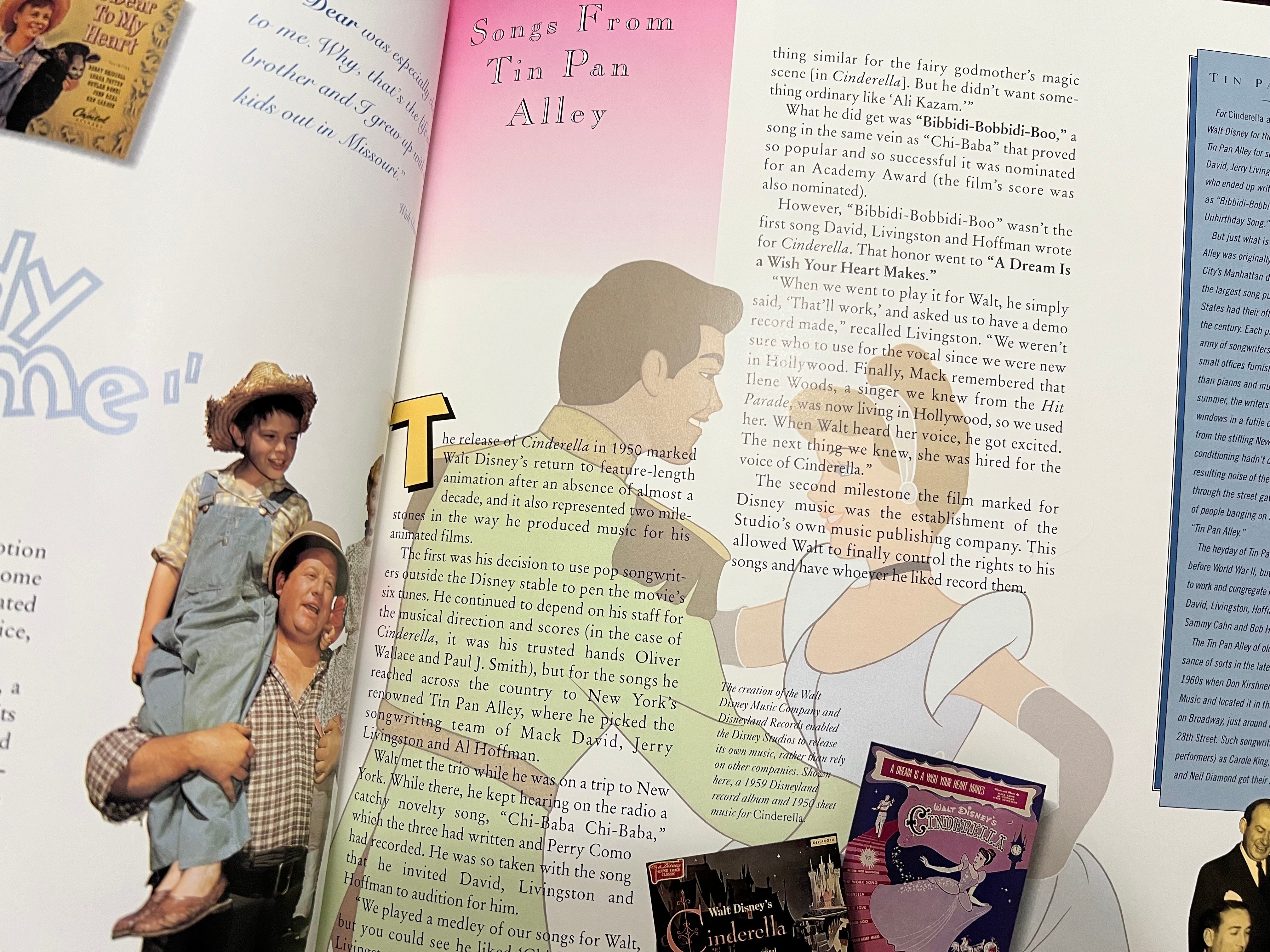 The complete kit includes three CDs filled with music from various Disney films, TV shows, and theme park attractions. To accompany these albums is this book. The Music of Disney: A Legacy of Song celebrates Disney’s musical history. The songs featured span from 1928 up until before the Renaissance era.